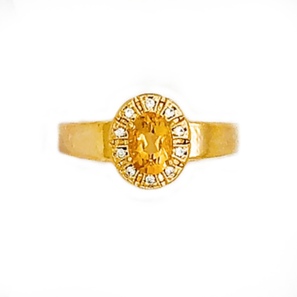 Anel de Formatura com 1 pedra Oval de 6 x 8 mm e 10 pedras de 0,5 Pts