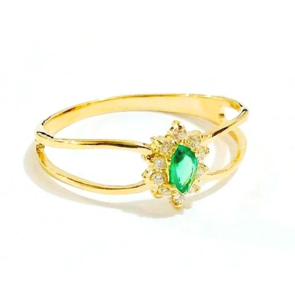 Anel de Formatura Navete em ouro 18K, com 1 navete natural ou sintética de 3 x 5 mm e 10 pedras de 1,20 Pts