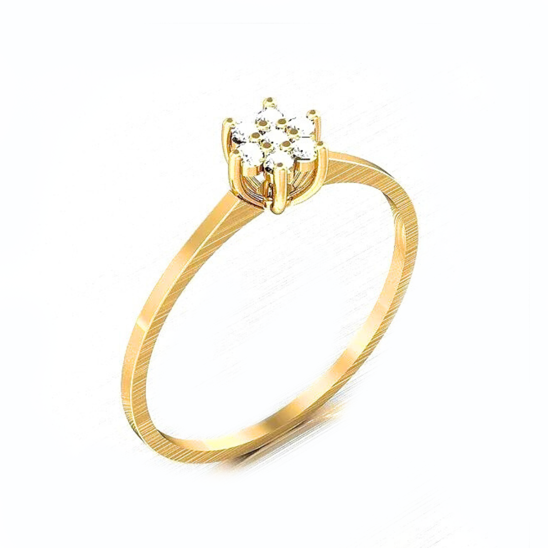 Anel Flor de Lis em ouro 18k, com 6 pedras naturais de 1,5 Pts e 1 pedra de 3,0 pts (2,0 mm)