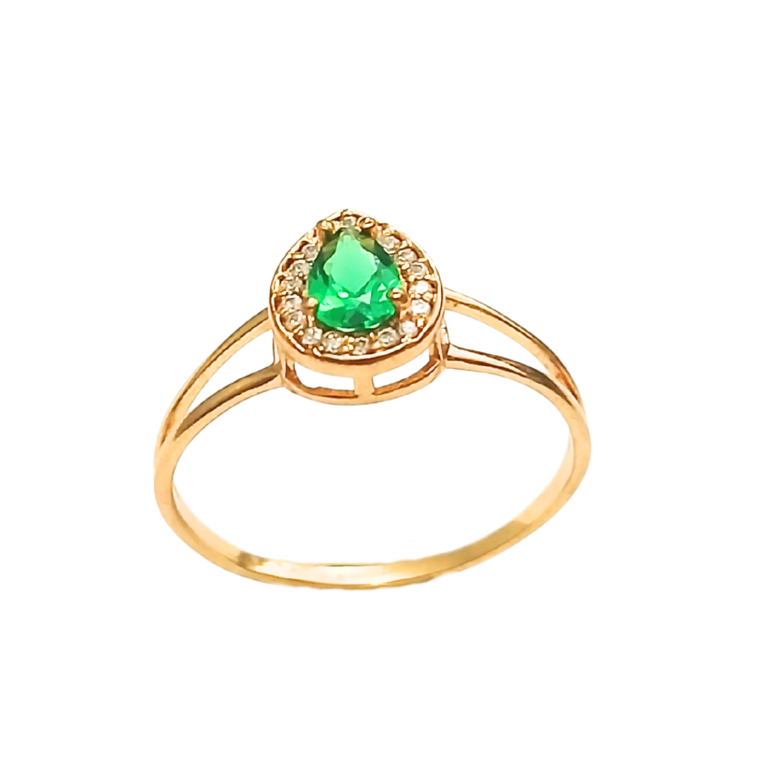 Anel Formatura Gota em ouro 18K com 1 pedra em gota natural ou sintética de 4 x 6 mm e 18 pedras de 0,5 Pts
