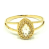 Anel Formatura Gota com 1 pedra em gota de 4 x 6 mm e 18 pedras de 0,5 Pts