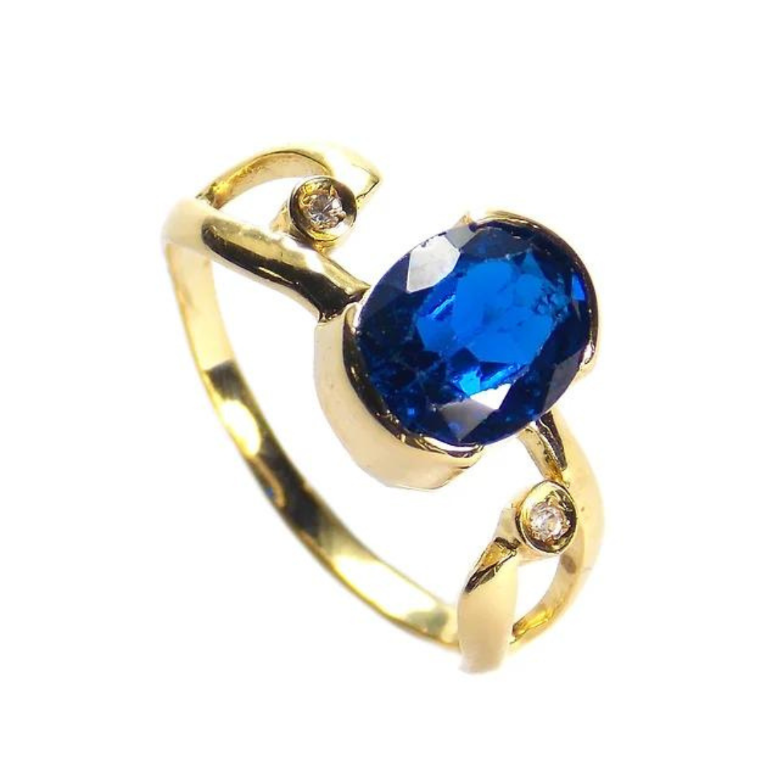 Anel Oval com 1 pedra oval natural ou sintética de 6 x 8 mm e 2 pedras pedras de 0,5 Pts