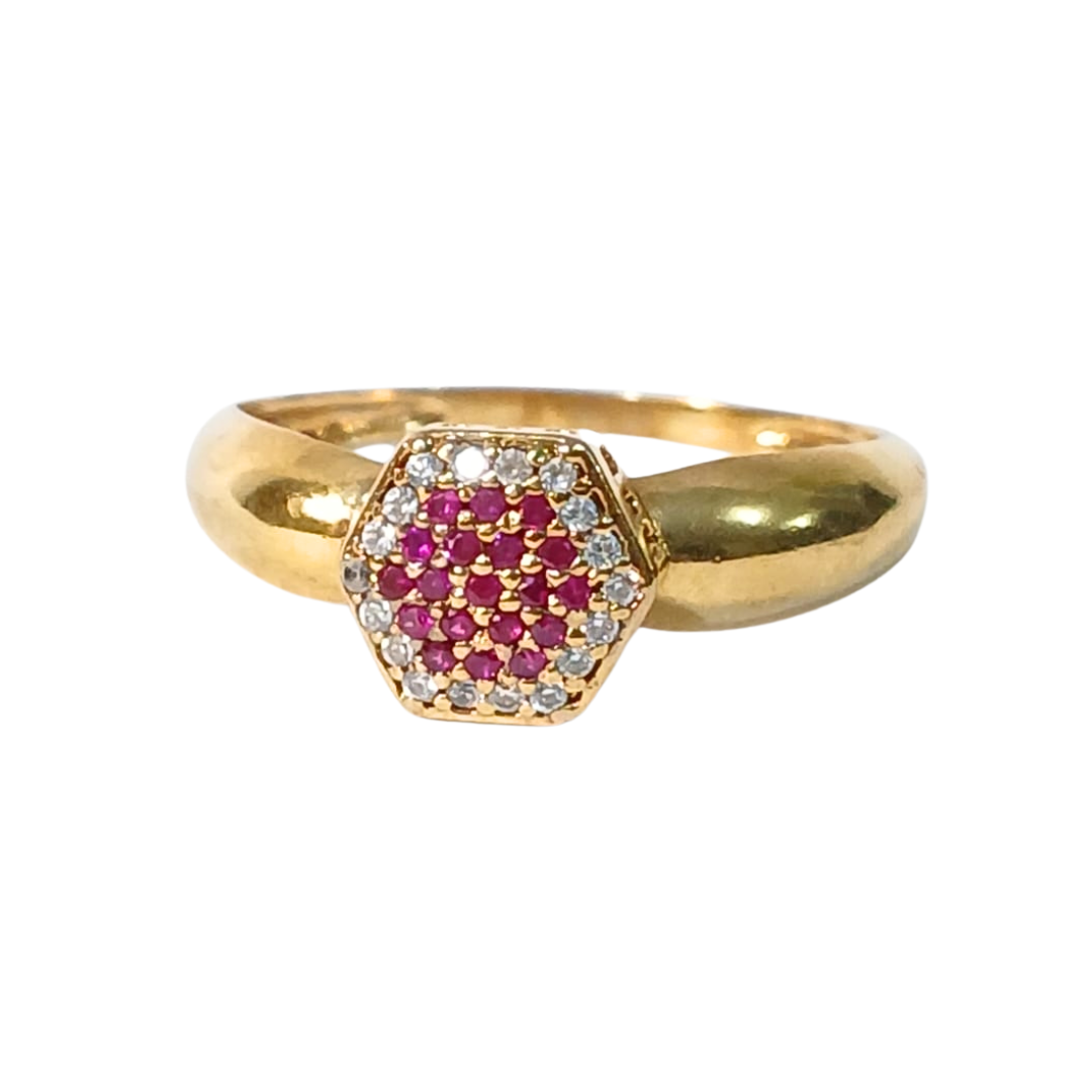 Anel Sextavado P em ouro 18k
