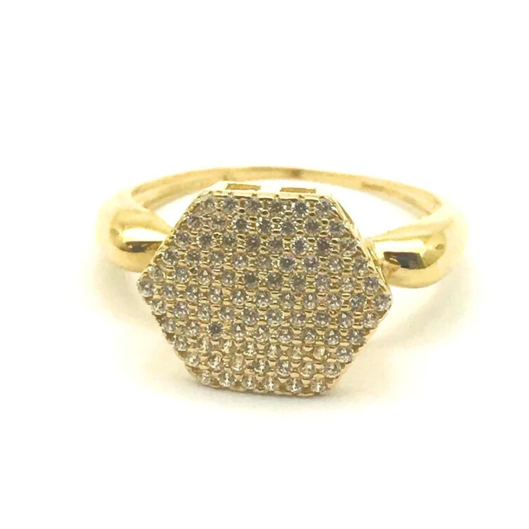Anel Sextavado Reto F em ouro 18k