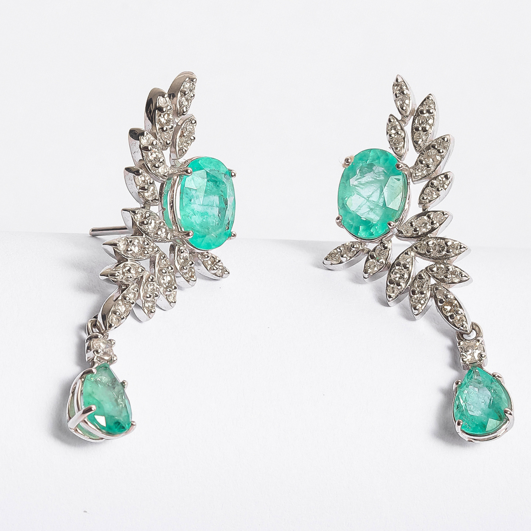 Brinco Alado em ouro 18k , com 70 pedras