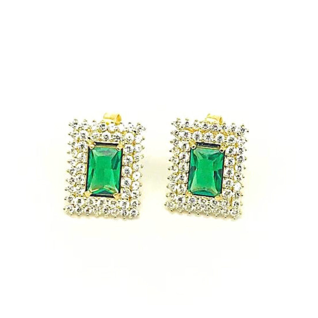 Brinco Baguete 2 Filas em ouro 18K, com 32 pedras naturais ou sintéticas de 0.5 Pts, 20 pedras de 0,8 Pts e 2 pedras carretes 8,5 x 4 x 6 mm