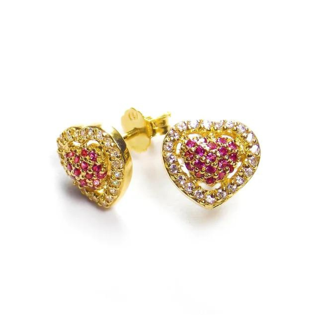 Brinco Coração de Amor em ouro 18K, com 78 pedras naturais de 0,5Pts ou sintéticas de 1,0 mm