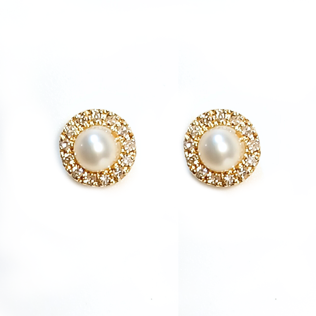 Brinco Ninho de pérolas Redondas em ouro 18k , com 28 pedras