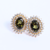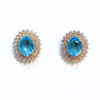 Brinco Oval Rosa em Ouro 18k ,com 86 pedras