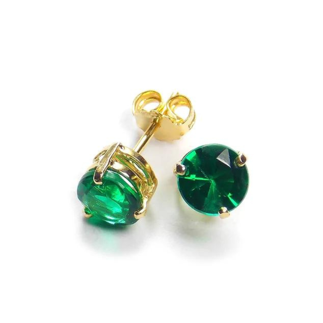 Brinco Ponto de Luz 3 garras em ouro 18K, com 2 pedras redondas naturais ou sintéticas de 6,0 mm