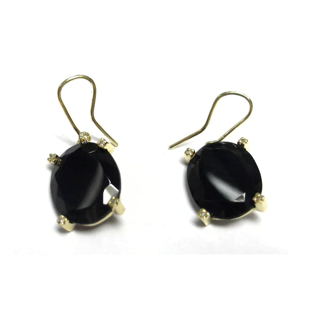 Brinco Zohar em ouro 18K, com 8 pedras naturais ou sintéticas de 0.5 Pts e 2 pedras ovais 13 x 16 mm