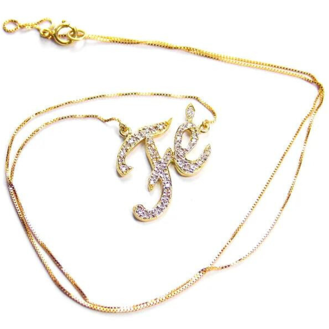 Colar Fé em ouro 18k, com 15 pedras naturais de 0,5 pts ou sintéticas de 1,0 mm