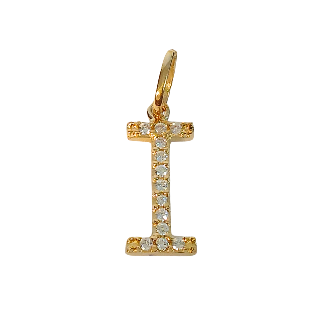 Pingente Letra I 10mm  em ouro 18k com 13 pedras .