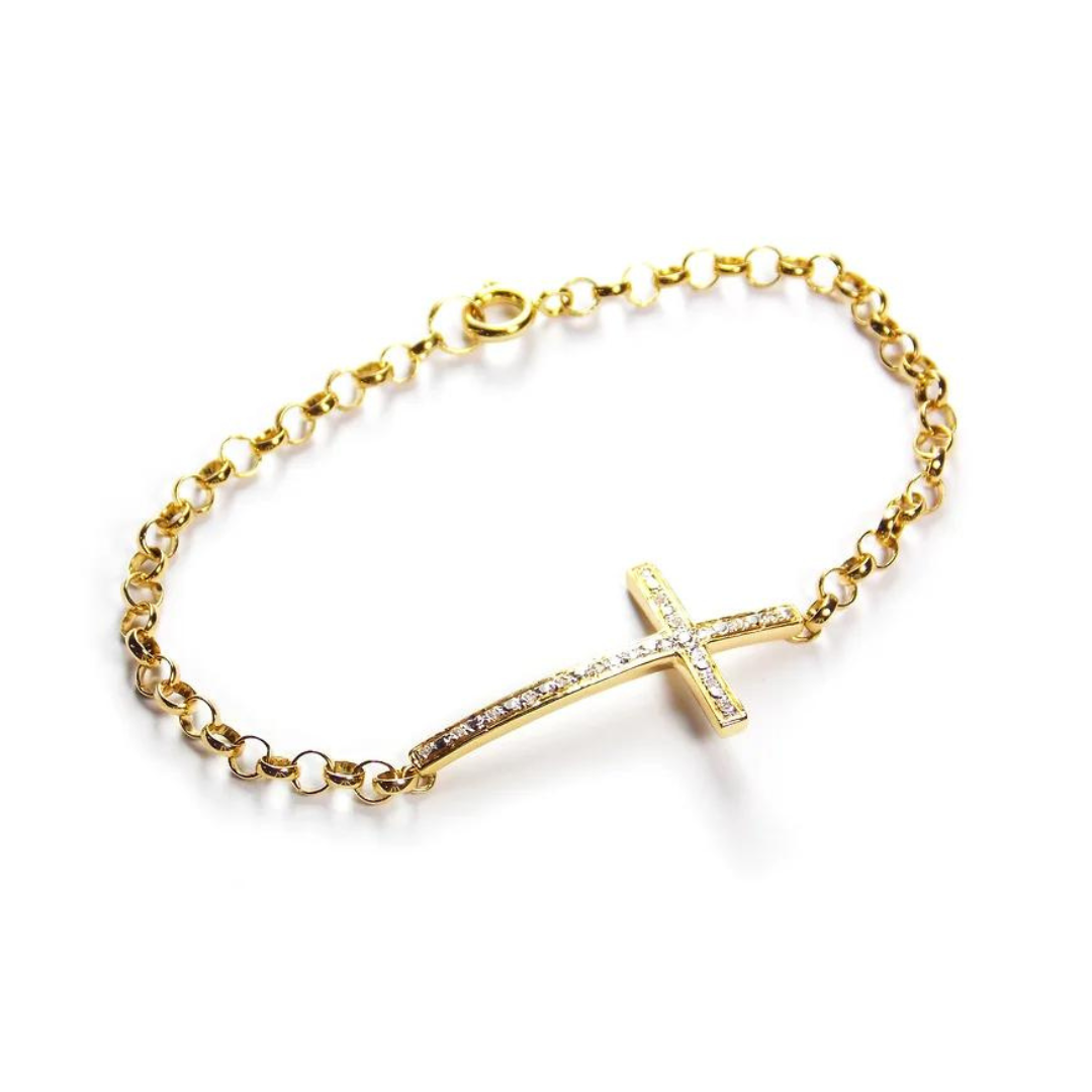 Pulseira Cruz Caída em ouro 18K, com 17 pedras naturais ou sintéticas de 0,5 Pts